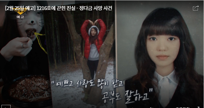 2009년 12월 17일 전남 화순으로 체험학습을 떠난 부산 K고 여고생 정다금 양은 12층에서 반듯한 자세로 떨어져 사망한 사건이 벌어집니다. 단순자살로 처리된 이 사건은 14년이 지난 지금까지도 왜 제대로 원인규명이 되지 않았을까요?