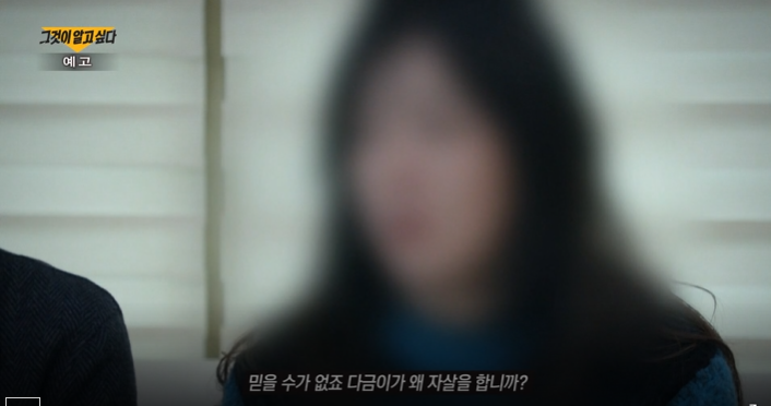 정다금 양 어머니도 당시 체험학습 때 가고 싶지 않다고 하는 딸에게 마지막 여고 추억이니 가라고 했다며 후회의 눈물을 내내 흘렸습니다. 이런 사실을 알고 있었더라면 가지 말라고 했을 것이라며 마치 당신이 딸을 죽음으로 내 몰은 듯 가슴 아파 하는 모습을 보니 답답해지더라고요.