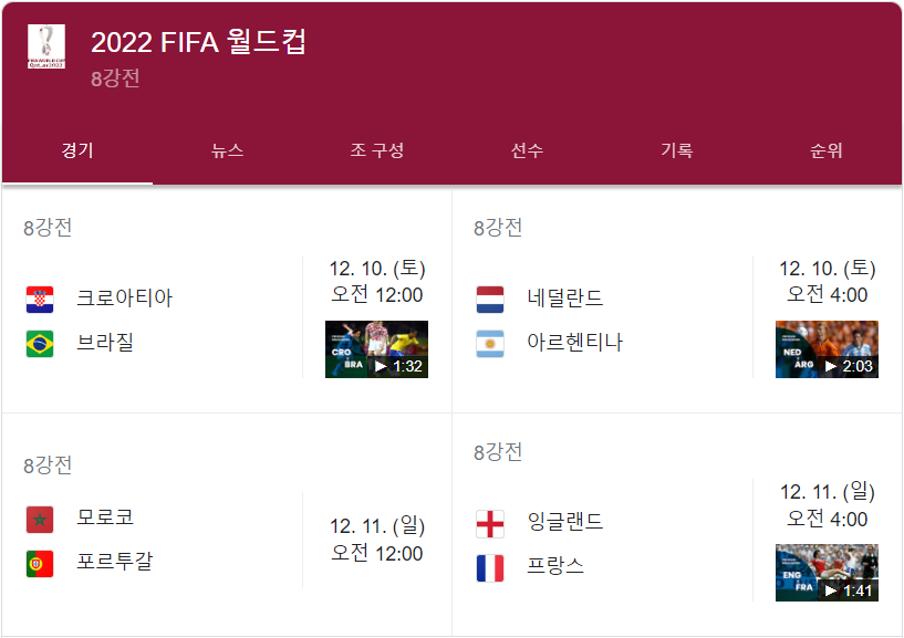 카타르 월드컵 8강 대진표