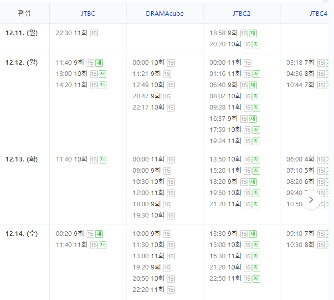 우선 다음주 수요일까지 일정입니다. 여러 번 반복해 재방송될 예정이니 본방사수를 하지 못한 분들은 시청하시길 바랍니다.