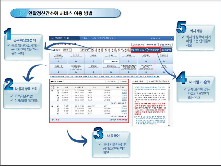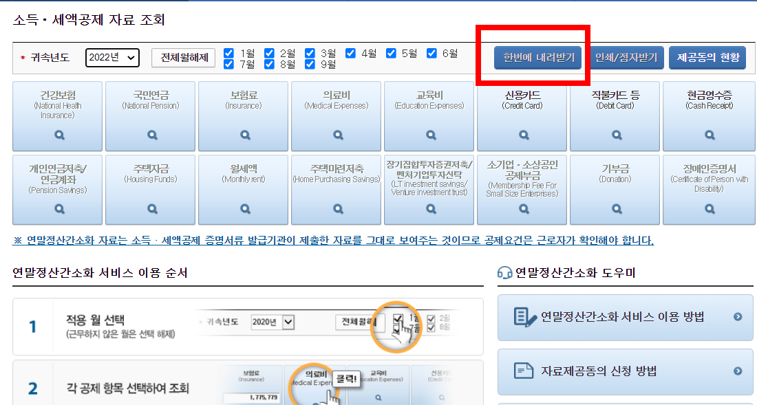1. 기부금 영수증 등 자동 조회되지 않는 항목이 있을 수 있습니다.