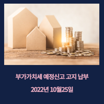 위에 언급한 예정고지 제외 사업자는 22년 7월부터 12월까지 매출에 대한 세금 부분은 23년 1월 부가가치세 확정신고 기간에 신고 납부하시면 됩니다. 다만 한 번에 내야 할 세금이 부담스러워 10월 25일에 납부하기를 원하시는 경우 세무서에 요청하면 고지서를 발송해드린다고 합니다.